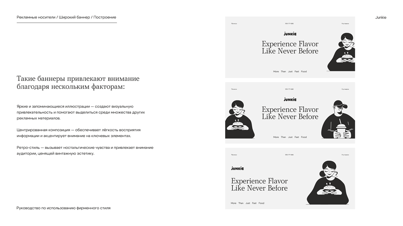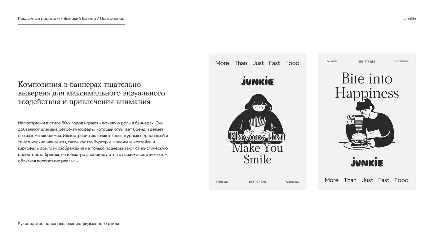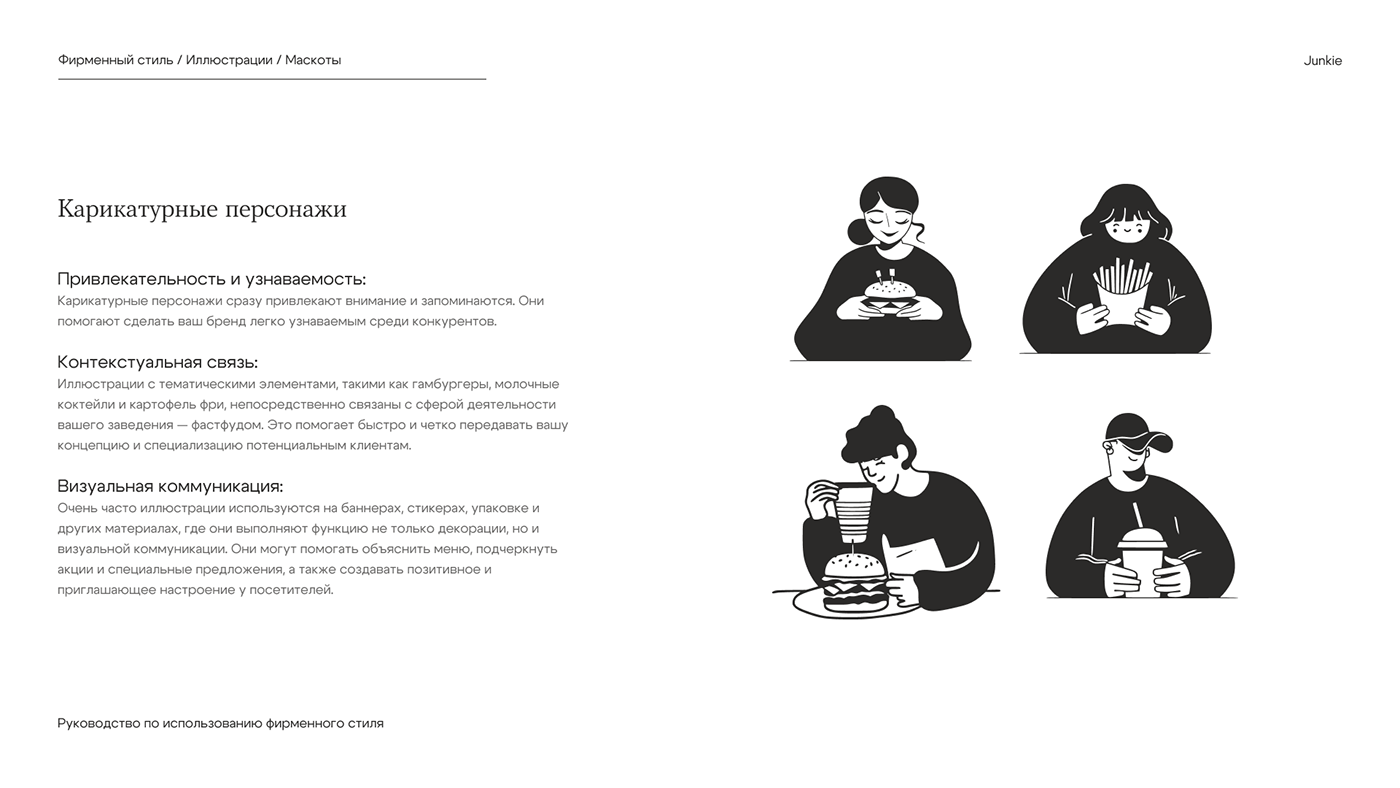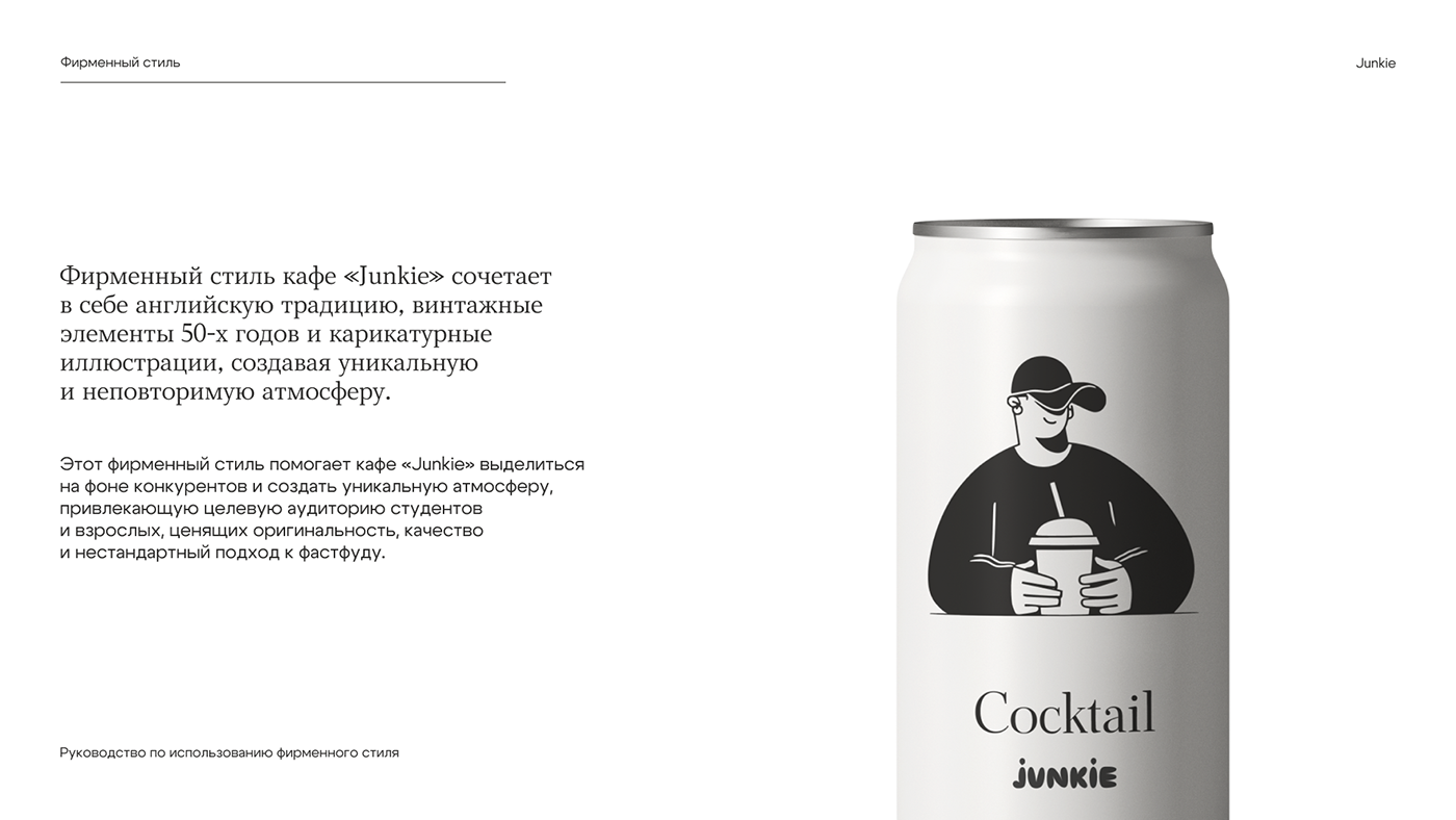 Для кафе был сделан редизайн фирменного стиля и создан брендбук, разработан маскот и новая концепция позиционирования. Фирменный стиль создан в ретро стиле 50х годов в ч/б стиле. Для разработки уникального фирменного стиля или дизайна для сайта, напишите в мессенджеры.